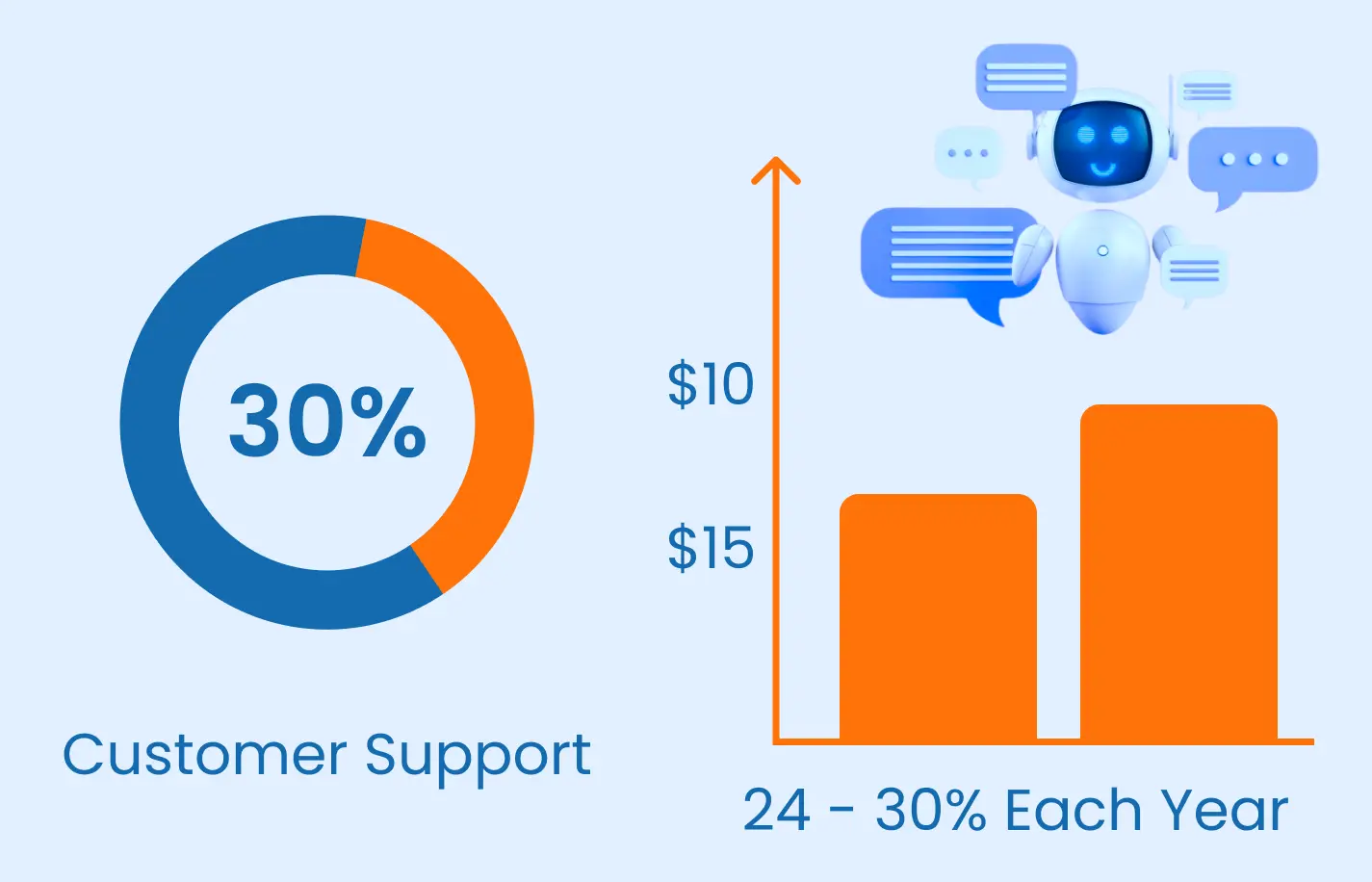 Businesses save around 30% on customer support costs with the help of chatbots. Source: Adam Connell