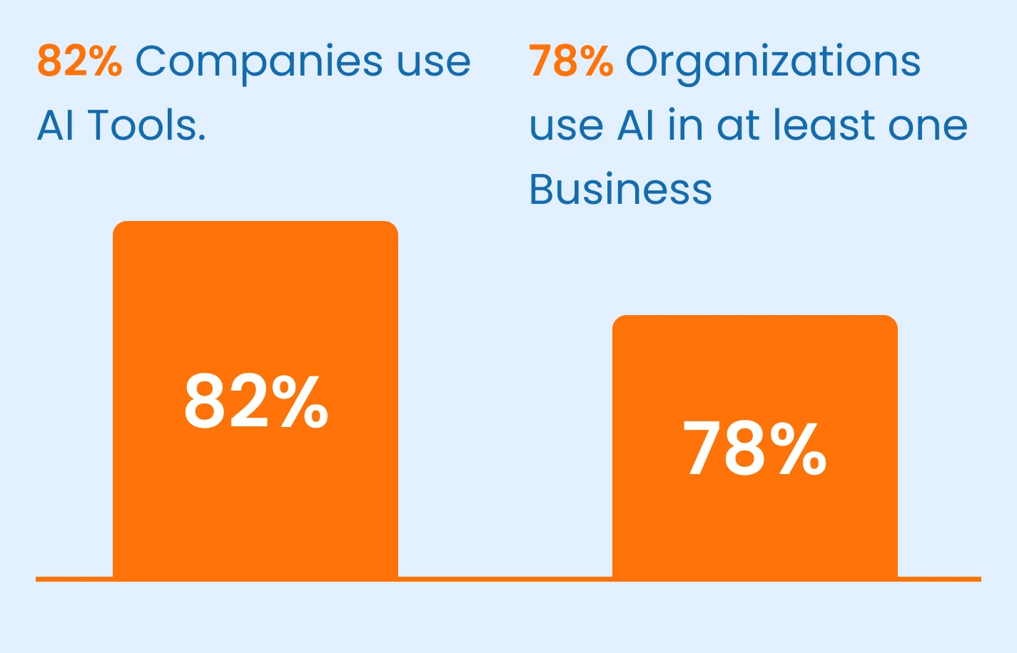 78% of organizations reported using AI in at least one business function. This shows AI is becoming a core part of operations. Source: McKinsey