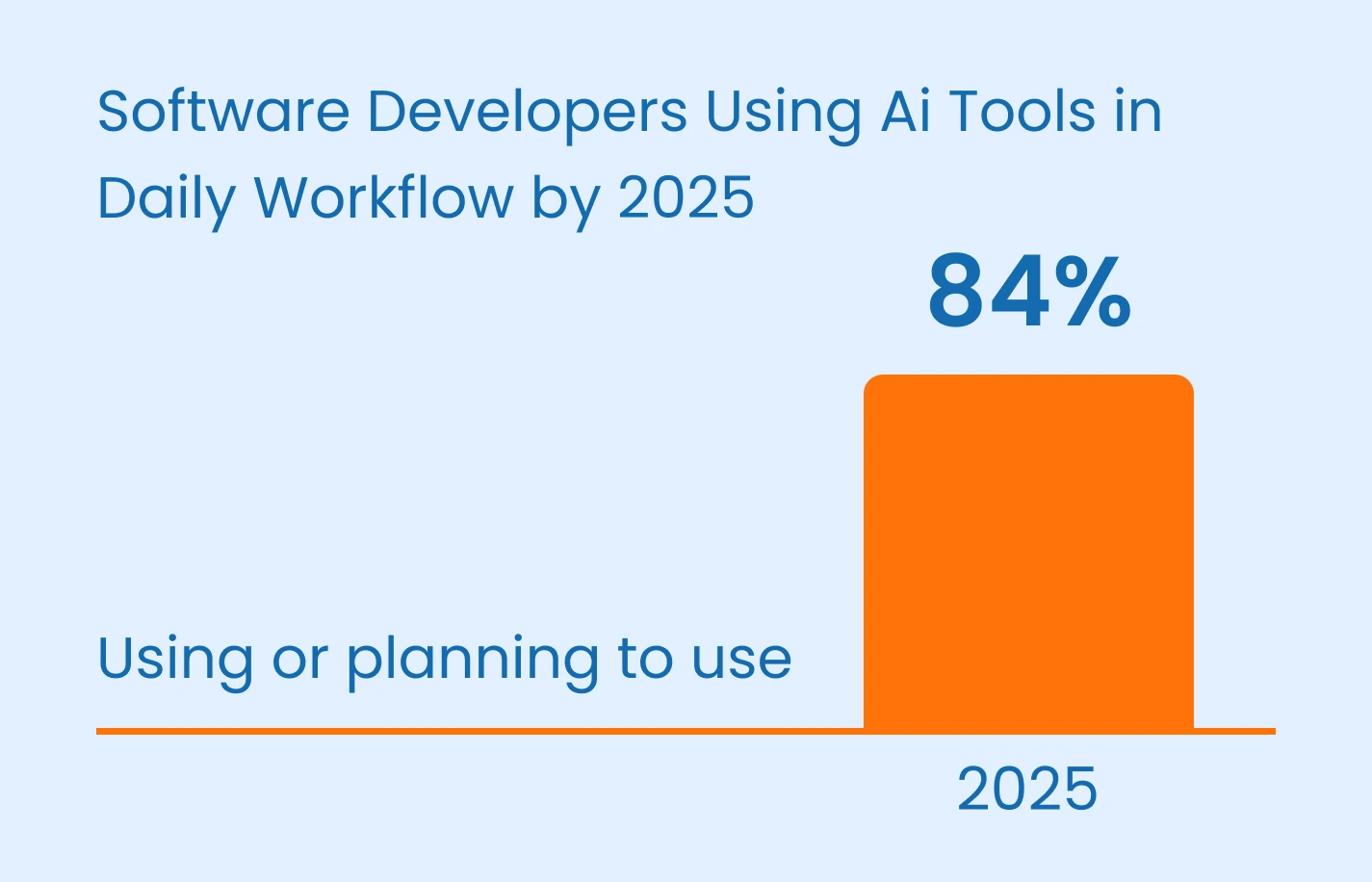 84% of software developers now use or plan to use AI tools in their daily workflow in 2025. This shows how quickly AI is becoming part of everyday development tasks Source: ITPro